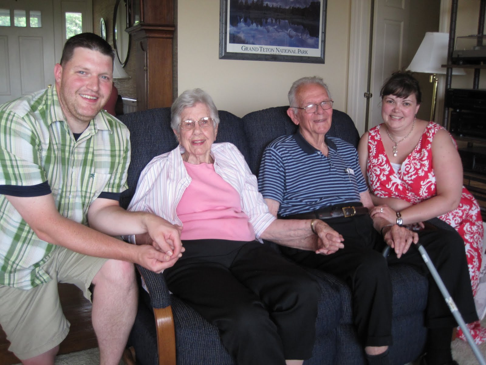 Aunt Jan and I drove just down the road and picked up Pop and Sis (my grandfather and his wife) to bring them back to 609 for dinner. It was really special to spend time with them for so long - they had dinner, dessert, and stayed to talk for more than 2 hours. Aunt Jan made a delicious dinner, then we got to have chocolate cake and coffee ice cream - a Brummer family tradition! Pop didn't eat much dinner, but he had a huge slice of cake and two servings of ice cream. Now Jarrod knows where I get my obsession with ice cream! We had a great conversation with Sis, and got to tell her all about living in Connecticut and moving to Hawaii.